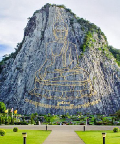 - Khao Chee Chan – Trân Bảo Phật Sơn- tượng Phật Thích Ca Mâu Ni đang ngồi thiền- được tạc trên một vách núi giữa trời. Sự độc đáo của bức tượng Phật lớn này là được khắc nổi bằng vàng ròng 24k, cao 130 m, rộng hơn 70m, được xây dựng vào năm 1996.